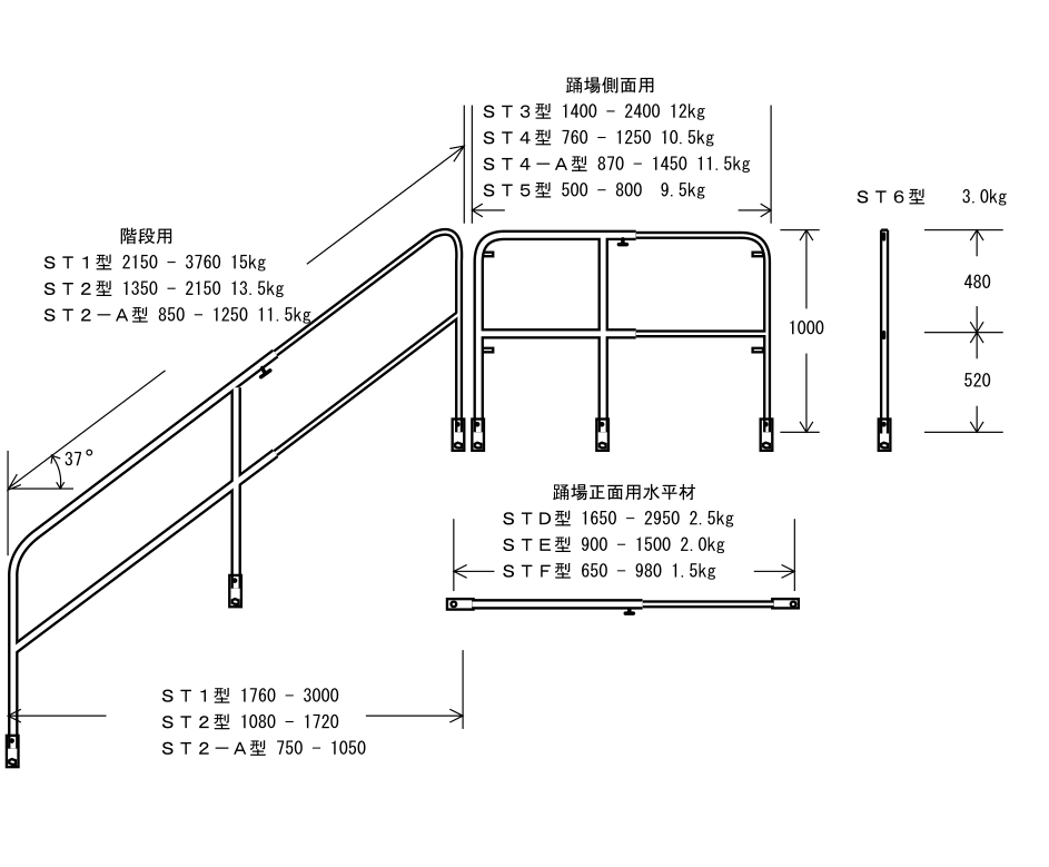 (設置条件に関しましては特柱と特柱の距離を 以下の計算式から算出して下さい) (傾斜距離)の2乗 = (水平距離)の2乗 +(高さ)の2乗 (上記の計算より適合する手摺を選択して下さい) |